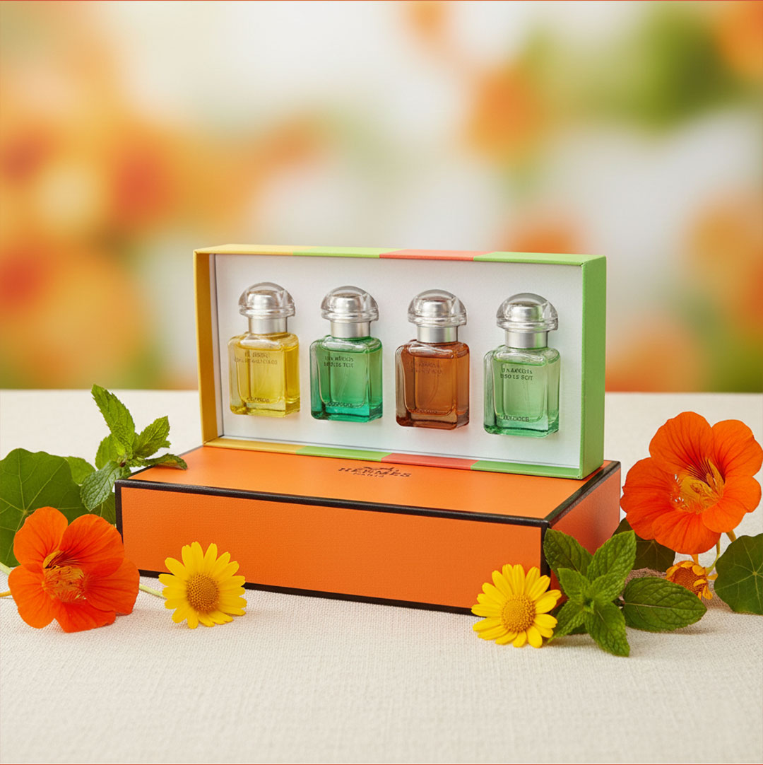 Designed in elegant mini bottles and beautifully presented in a premium gift box, this set is ideal for luxury gifting, travel, or personal fragrance exploration. The light, airy compositions make it suitable for everyday wear, offering a unique olfactory journey through different garden landscapes. Perfect for fragrance lovers who appreciate timeless French perfumery, this Hermès miniature set combines artistry, luxury, and nature-inspired sophistication in one collectible package.